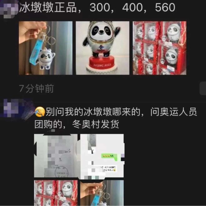 在部分微信群里,也開始有冰墩墩代購(gòu)的出現(xiàn)。在李女士展示的群聊天截圖中,一個(gè)官方售價(jià)58元的冰墩墩鑰匙扣以88元順豐到付的價(jià)格售賣,依然也有群友愿意為其買單。