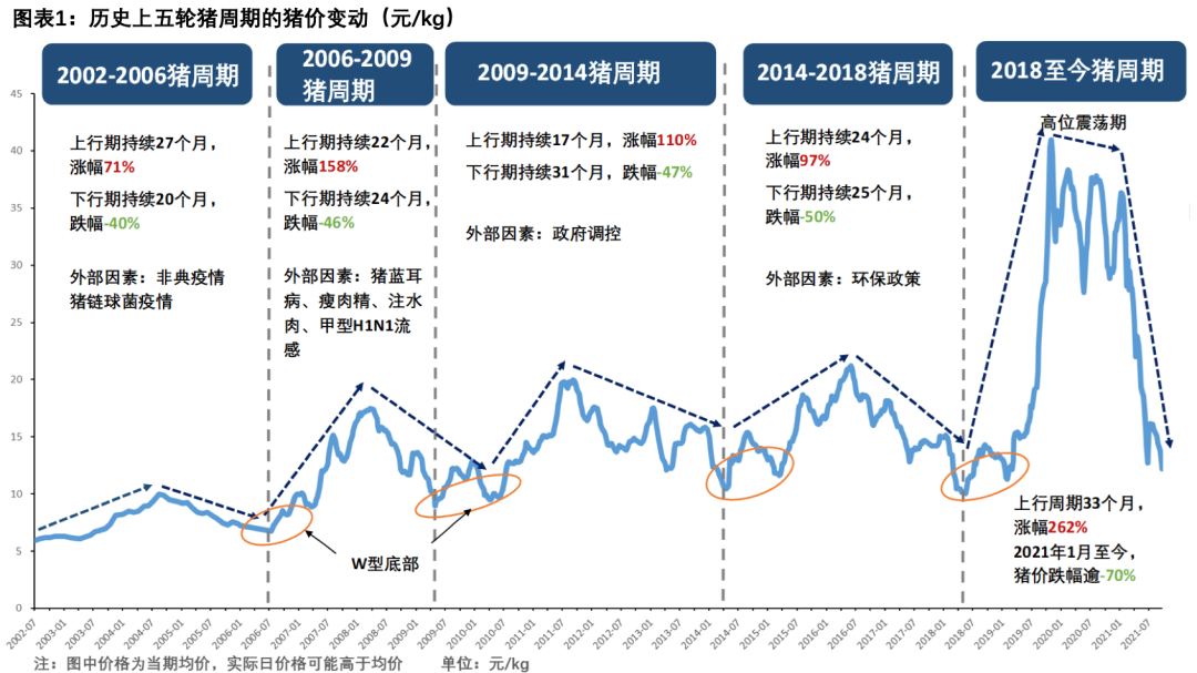 自2002年以來的五輪豬周期,每輪周期持續(xù)時(shí)間約3-4年。