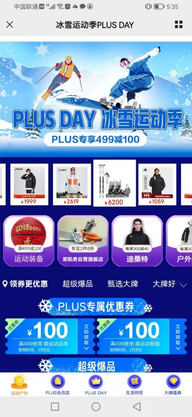 隨著冬奧會冰雪盛事的到來,大眾對冰雪運動的熱情和需求不斷攀升,京東也以自身的熱愛點燃大眾對冰雪的熱愛,為大眾接觸冰雪運動降低門檻。近期京東運動在線上開啟了冰雪嘉年華活動,恰逢京東會員PLUS DAY冰雪運動季專項活動,海量運動員同款裝備、明星大牌產品齊聚。2月8日京東PLUS會員可領運動鞋服券滿499減100,還有運動潮品專屬補貼低至5折的優(yōu)惠。