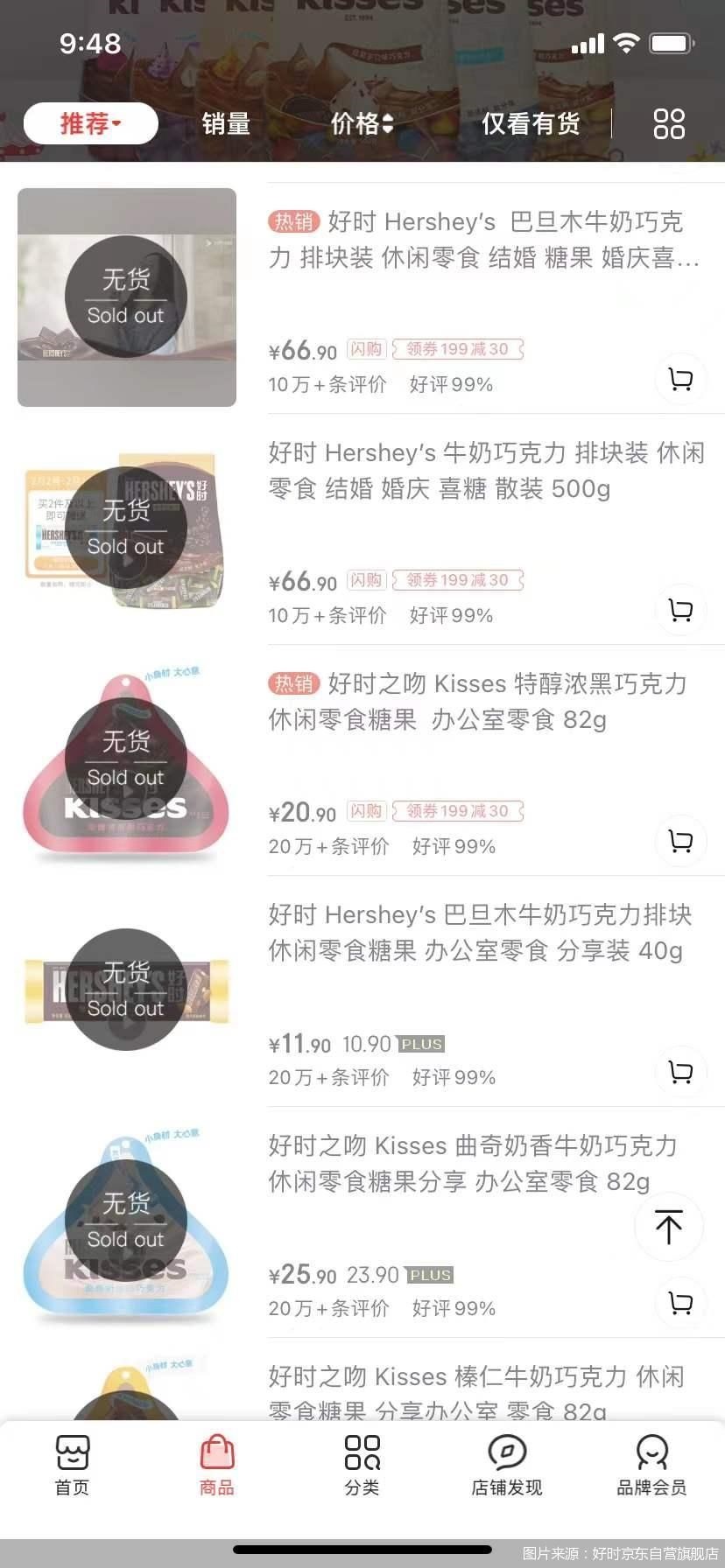 同月,好時(shí)天貓旗艦店終止經(jīng)營(yíng),好時(shí)京東自營(yíng)店內(nèi)多款商品也顯示無(wú)貨。有消費(fèi)者表示,華潤(rùn)萬(wàn)家、人人樂(lè)、永輝都沒(méi)有賣(好時(shí))的。