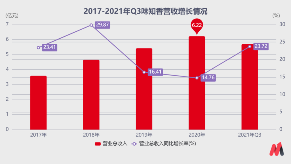 以定位C端的預(yù)制菜企業(yè)味知香營(yíng)收增長(zhǎng)為例,2017年至2021年,味知香營(yíng)業(yè)收入近乎翻倍,2017至2020年的年均營(yíng)收增速達(dá)21.11%。