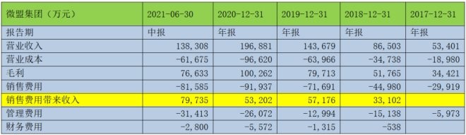 總和毛利分別為50%,55%,銷售費用率達(dá)到46%,58%,而可怕的是,自上市以來,微盟一直保持著如此高的費用。