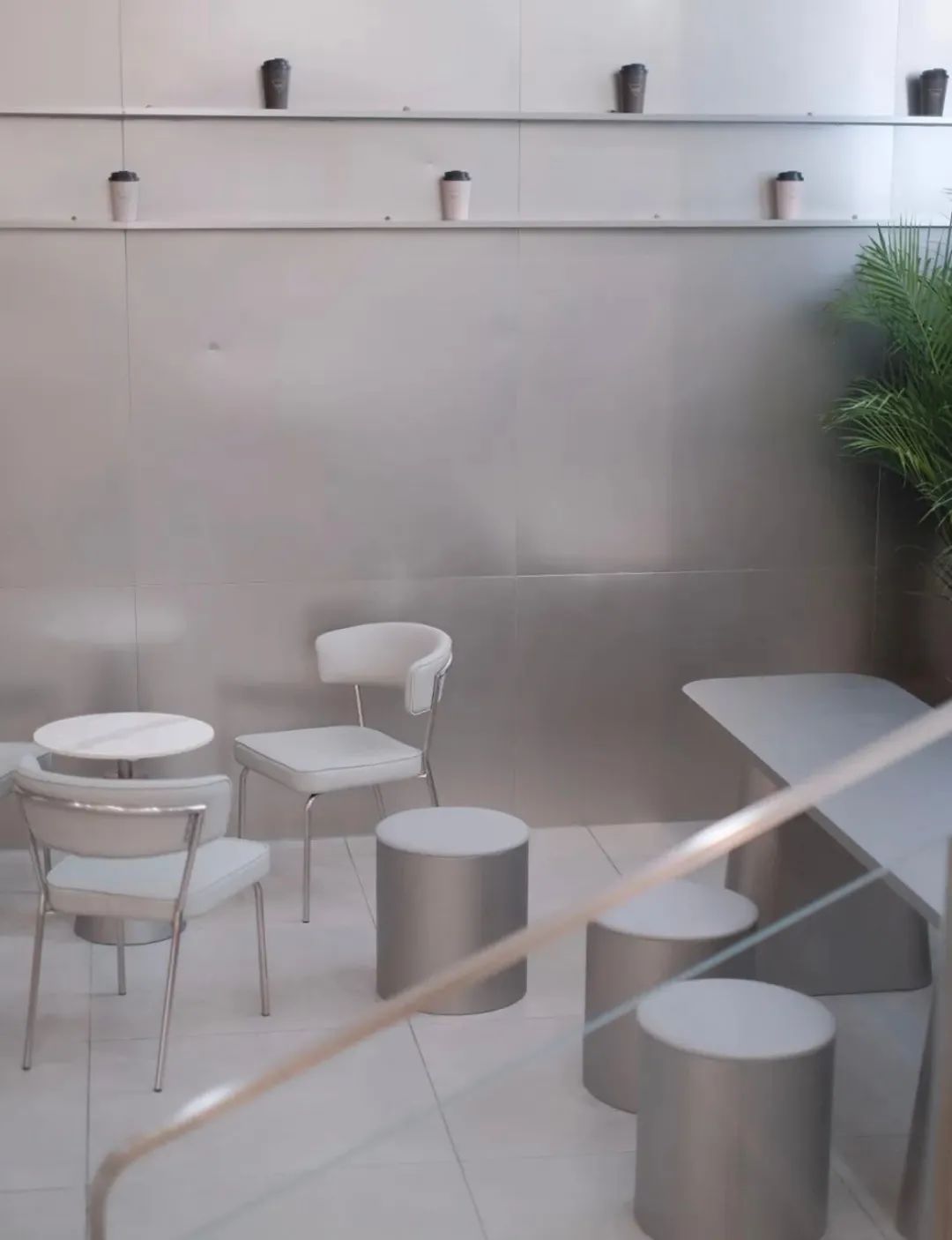 在浙江首店的店面裝修上,MANNER COFFEE大面積地運用了白色、銀色的顏色,在桌椅的選擇上也同樣青睞帶有白色元素的金屬制桌椅,店內(nèi)裝修風(fēng)格高度統(tǒng)一,白色和銀色又給人以干凈整潔的感受,整個店面透露著低調(diào)的高級感。