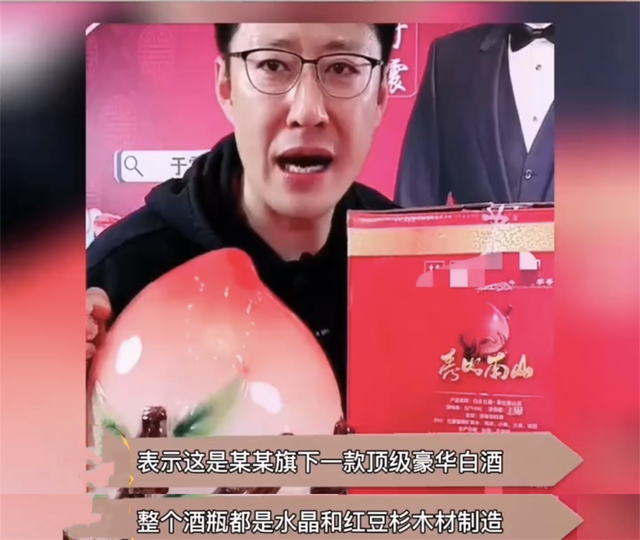 演員于震在介紹一款酒時,聲稱這款酒本來是要出口到國外的高端白酒,因為疫情原因?qū)е聼o法順利出口,所以商家為了資金回籠才在內(nèi)地售賣。水晶瓶身、紅豆杉木鑲嵌20克黃金的酒托,仙桃造型價值十幾萬,而當(dāng)報出158元的價格時,網(wǎng)友再也忍不住吐槽功力直言“滿嘴跑火車”。潘長江甚至在反詐警官老陳的多次連麥下,依然自顧自地推銷一款299元的白酒。