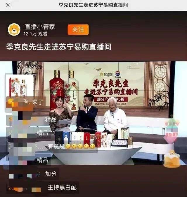 后來入場的中年男星大概都明白,中規(guī)中矩地賣不出去,有銷量的都要“整點活”。潘長江帶著德云社成員欒云平、張九南在直播間跳起了舞;陳浩民一家六口齊上陣,后因孩子不配合倉促離場!八殹敝皇情_胃菜,聰明的團(tuán)隊還會附贈限時限量的名酒拉高人氣。