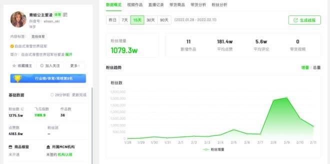 究其原因,王濛和谷愛凌在冬奧會(huì)開始前,就已經(jīng)開始在社交平臺(tái)上開設(shè)和運(yùn)營(yíng)賬號(hào)。以抖音為例,谷愛凌在2018年就開設(shè)了抖音賬號(hào),王濛也在去年?yáng)|京奧運(yùn)會(huì)前后開設(shè)賬號(hào)。