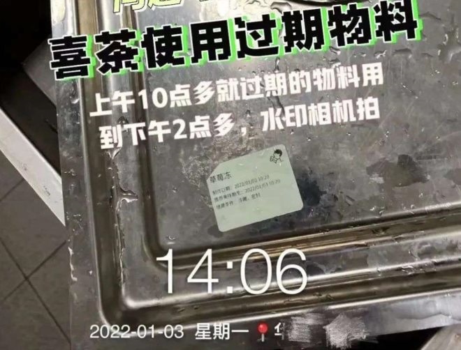 小紅書上,另一位自稱是喜茶前員工的博主曬出了自己的離職原因,因舉報(bào)喜茶篡改物料效期,卻被開警報(bào)單,店長和區(qū)經(jīng)理都不予處理,最終被迫停職。