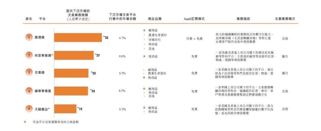 從弗若斯特沙利文對于下沉市場交易平臺的排名中可以看出,匯通達(dá)是排名前五的平臺中唯一對SaaS產(chǎn)品收費(fèi)的交易平臺。