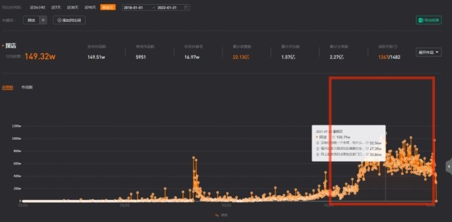 我們用新抖監(jiān)測工具,扒了“探店”這個話題近四年的聲量數(shù)據(jù),放眼整個大盤,“探店”相關(guān)抖音短視頻累計獲贊22億,直接把“圖文探店”碾進了歷史的垃圾桶。