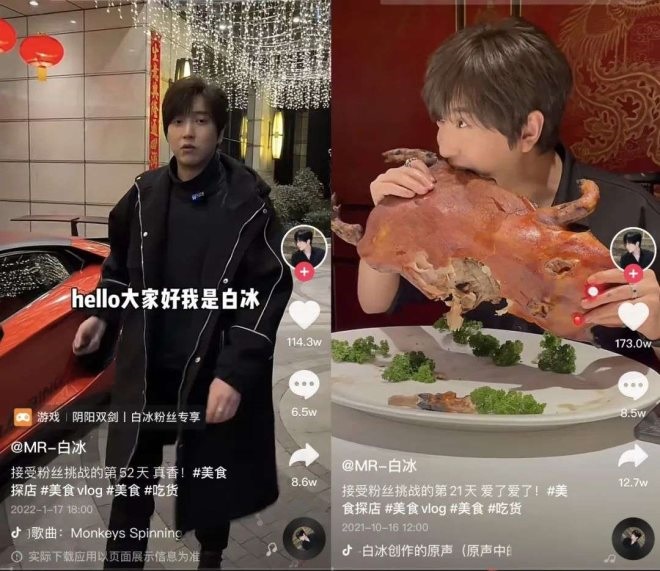主打高富帥反差萌、鋼鐵直男、寵粉人設(shè)的“MR-白冰”,就是探店里吃得矜持的那類。