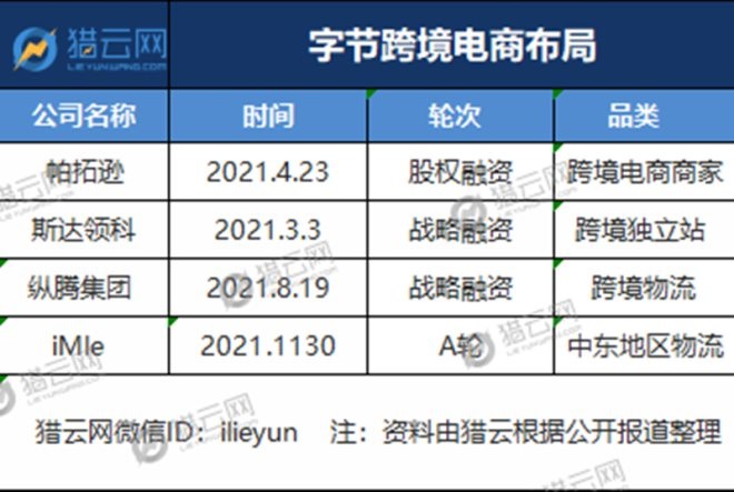 除了躬身入局之外,字節(jié)也在通過(guò)投資布局跨境電商。
