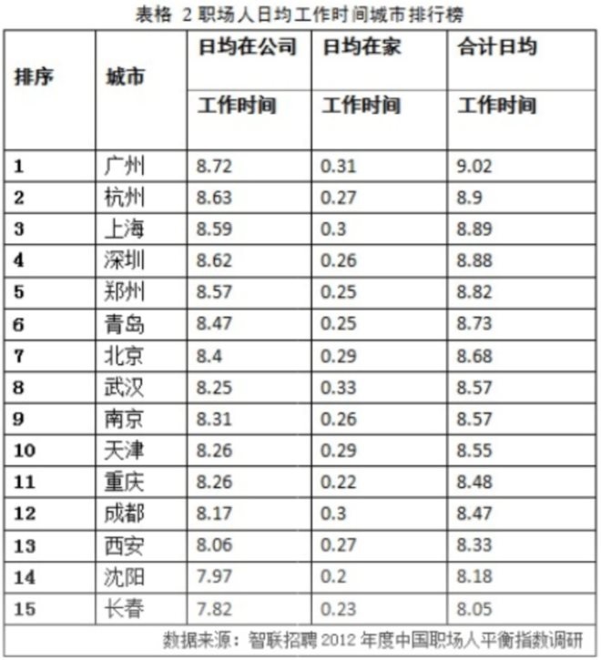 無獨(dú)有偶,北京大學(xué)社會調(diào)查研究中心聯(lián)合智聯(lián)招聘推出的《中國職場人平衡指數(shù)調(diào)研報(bào)告》同樣顯示,三線以下城市居民平均工作時(shí)間要遠(yuǎn)低于頭部城市。