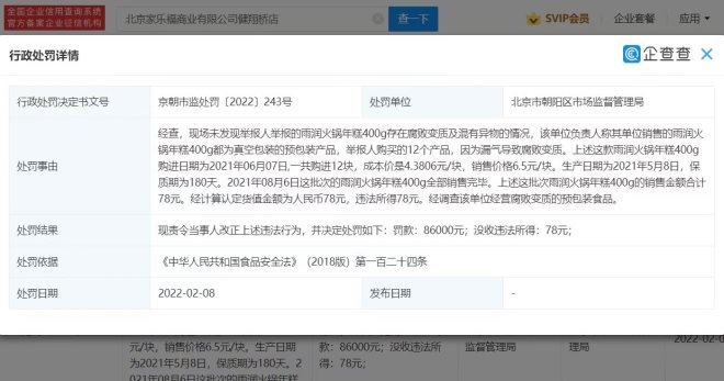 近日,北京家樂福商業(yè)有限公司健翔橋店新增行政處罰信息,詳情為該單位經(jīng)營(yíng)腐敗變質(zhì)的預(yù)包裝食品,違反了《中華人民共和國(guó)食品安全法》,處罰結(jié)果未罰款86000元,并沒收違法所得78元,處罰單位為北京市朝陽區(qū)市場(chǎng)監(jiān)督管理局。
