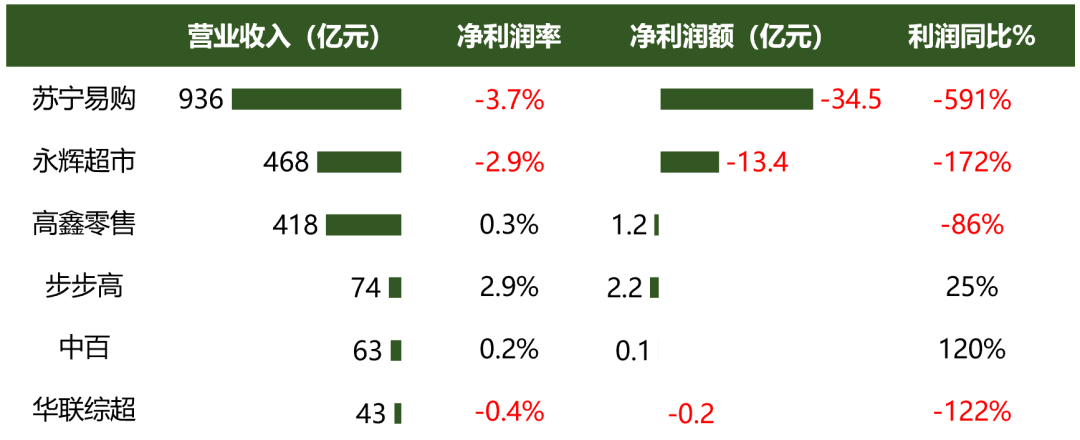 圖1:國(guó)內(nèi)典型零售上市公司業(yè)績(jī),2021H1
