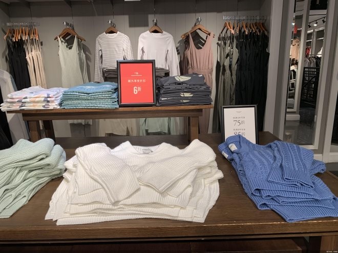 與此同時,持續(xù)運(yùn)營的北京門店還在清倉打折。例如在三里屯門店,一些上衣外套買兩件能享8.5折,一樓產(chǎn)品則在做清倉處理。“春節(jié)后需要促銷掉部分庫存!币晃还ぷ魅藛T表示,如果看中了部分款式而店內(nèi)無尺碼,付款后門店能將該商品給消費(fèi)者免費(fèi)包郵寄到家。