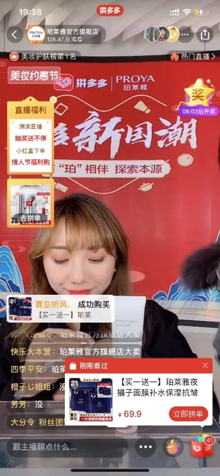 “多多新國潮”聯(lián)合珀萊雅開啟全鏈路直播 230萬網(wǎng)友打卡
