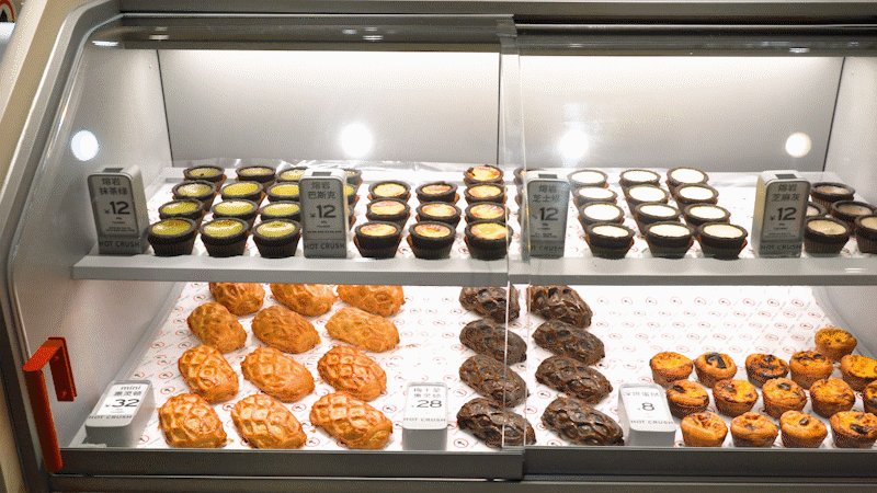 「趁熱集合」全球首店以米白色為主色調(diào),暖色調(diào)的燈光令烘焙更有食欲感。LED屏、整面周邊墻、隨處可見的logo又增添了不少未來主義色彩。