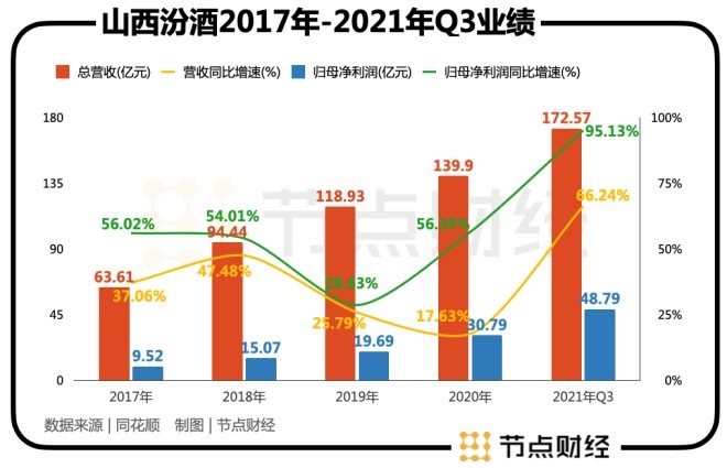 從近幾年的業(yè)績增長來看,山西汾酒也充分享受到了行業(yè)變局帶來的紅利。