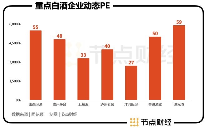 而從估值上看,山西汾酒可以說是受到了市場優(yōu)待。截至2月16日收盤,公司動態(tài)PE在55倍左右,靜態(tài)PE甚至達到117倍,在眾多白酒品牌中尤為突出。
