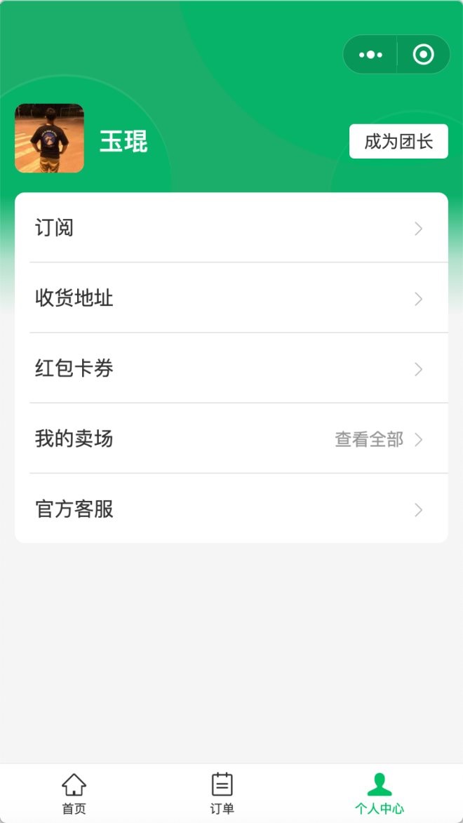 在鵝享團的個人中心內(nèi)會展示團長的基本信息,以及一些其他的基礎(chǔ)功能,比如收貨地址、紅包卡券、官方客服和我的賣場(類似于微信小商店的商品櫥窗)。