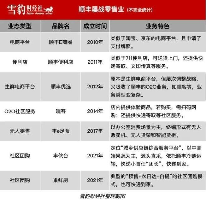 12年來,順豐對新零售十分執(zhí)著,屢敗屢戰(zhàn):幾乎集齊了新零售的所有業(yè)態(tài),包括便利店、電商、生鮮電商、社團團購、社區(qū)小店等。