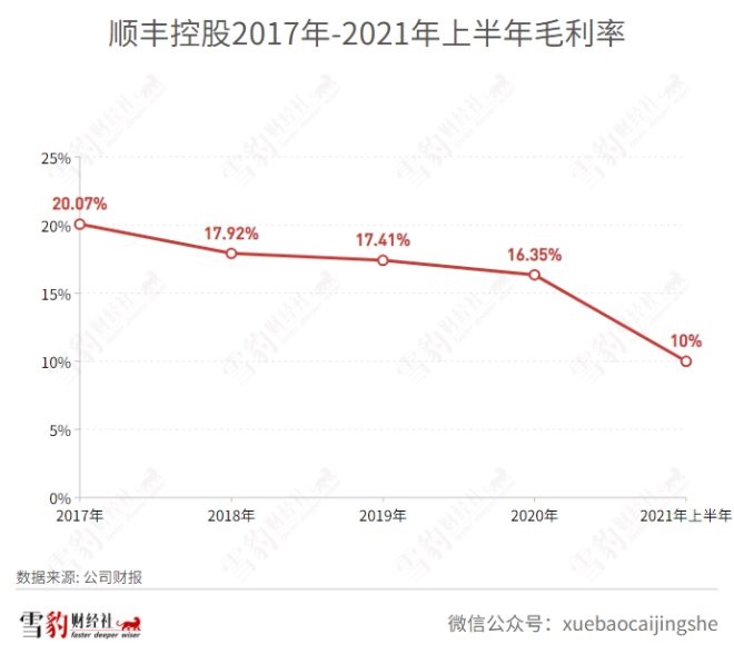 據(jù)順豐控股財報,2021年上半年,順豐控股毛利率為10%。而零售業(yè)企業(yè)的毛利率,基本保持在20%-50%之間,相較而言,順豐快遞確實賺的是“體力勞動”的錢。低毛利率和去年極兔掀起的價格戰(zhàn),也導(dǎo)致順豐控股業(yè)績不理想,2021年一季度,順豐出現(xiàn)上市后的首次虧損。