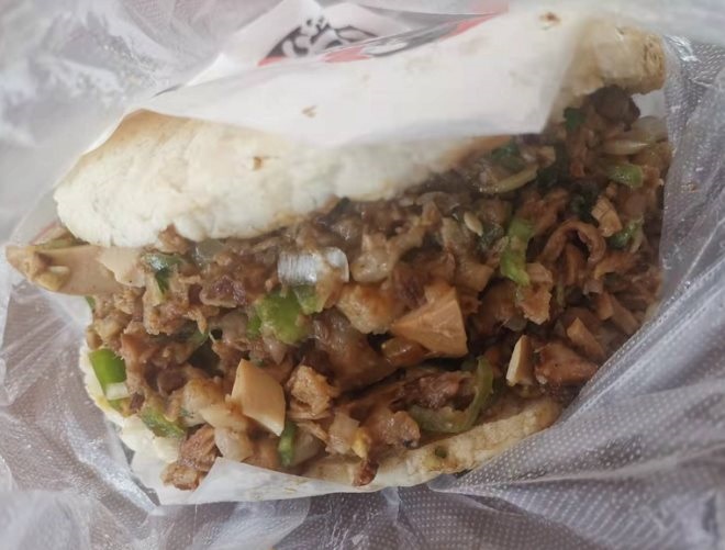 照片中是3年前的場景,如今依然如此,只是伴隨著之前豬肉價格的暴漲,他們從5元/個漲到了10元/個,因此也有那么一段時間,不那么排大長隊了,但不變的是分量——以我為例,200斤盛年壯漢,午餐吃大半個就“有點撐”了,你說夠不夠?qū)嵒荩?/em>