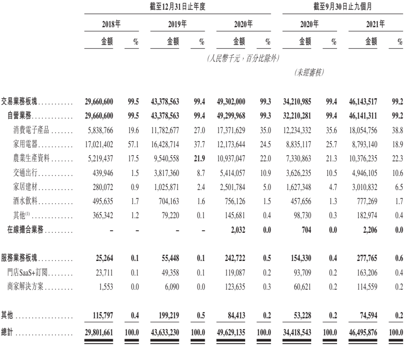在自營業(yè)務中,匯通達主要覆蓋對體驗和服務要求較高的高單價商品,如消費電子產(chǎn)品、家用電器和農(nóng)業(yè)生產(chǎn)資料,三者在2021年前三季度的收入占比高達80%,而酒水飲料等快消品收入貢獻比不足2%。
