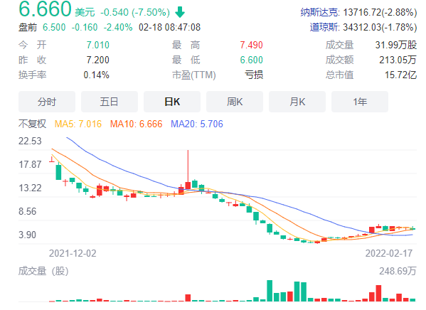 或許出乎梁昌霖意料的是,亮麗財報仍然未提振股價,吸引投資者埋單。美東時間2月17日,叮咚買菜開盤大跌6.94%,最新股價為6.66美元,較IPO時23.5美元發(fā)行價低了70%。