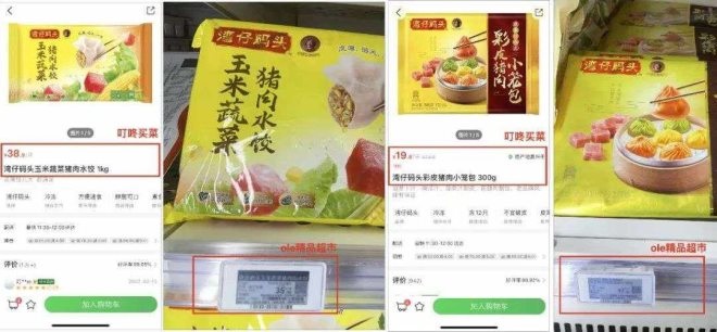 有上海消費者舉例稱,同品牌、同產(chǎn)地、同包裝的豬肉水餃1kg,在叮咚買菜APP上售價38.9元,但是在Ole'精品超市——堪稱國內(nèi)高端超市大佬的線下門店,卻只需要35.9元,叮咚買菜1kg貴了整整4元。這并非孤例,同樣產(chǎn)自江蘇鹽城的亞麻籽豬肉340g,叮咚買菜上面需要72.8元,City'Super精品超市只需要56元,叮咚買菜貴了16.8元。