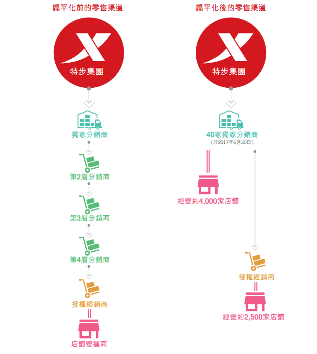 數(shù)字化讓特步有了渠道變革的基礎(chǔ),原本在品牌與終端門(mén)店間的五層“中間商”,被簡(jiǎn)化至了一層或兩層。