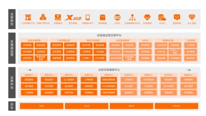 2015年,時(shí)任特步CIO的唐坤軍拉著當(dāng)時(shí)還是特步集團(tuán)副總裁兼電商總經(jīng)理的肖利華,敲開(kāi)了創(chuàng)始人丁水波的辦公室大門(mén)。他們提出了將原有系統(tǒng)全部打碎、重組、做云上中臺(tái)的計(jì)劃,用以實(shí)現(xiàn)特步急需的渠道變革。項(xiàng)目預(yù)算一千萬(wàn),建設(shè)耗時(shí)3年。
