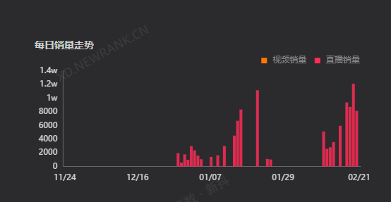具體來看,在完成2月20日的直播后,兩個(gè)多月的時(shí)間里,東方甄選日直播銷量最高為1月21日當(dāng)天的1.11萬件,和2月19日銷售的1.21萬件商品。