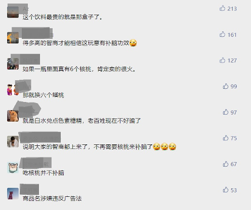 但是,前面已經(jīng)提到,消費(fèi)者對(duì)健康的認(rèn)知,早已不是十多年前的水平,所謂核桃“以形補(bǔ)形”早已過(guò)時(shí)。在養(yǎng)元飲品眼中消費(fèi)者重度用腦的痛點(diǎn),逐漸成為自家產(chǎn)品的槽點(diǎn)。