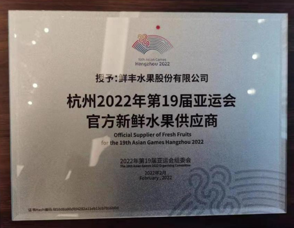鮮豐水果榮膺杭州2022年亞運(yùn)會(huì)官方新鮮水果供應(yīng)商