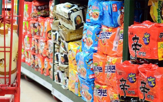圖/北京一家沃爾瑪超市方便面貨架(左)BHG華聯(lián)精品超市貨架(右) 來源/燃財(cái)經(jīng)拍攝