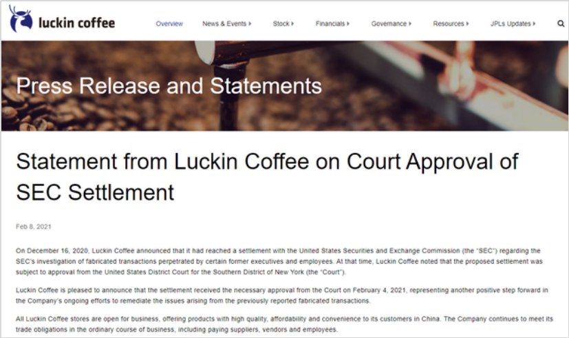 瑞幸也一樣,和解意味著瑞幸在法律層面上并沒有留下案底,在上市的問題上,并不會(huì)因?yàn)闅v史問題而遭遇特別對(duì)待。這一定程度上也表明了SEC對(duì)瑞幸的態(tài)度,并不想一棒子打死,而是更樂見積極糾正自身錯(cuò)誤的瑞幸能夠重回正軌。