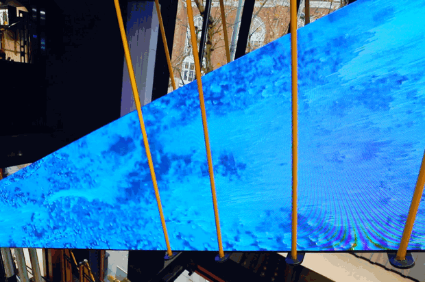 巨大的裸眼3D LED屏貫穿一二層,再現(xiàn)品牌起源航海探險(xiǎn)過(guò)程的壯麗景觀,并透過(guò)櫥窗,成為店面外形設(shè)計(jì)的一部分。