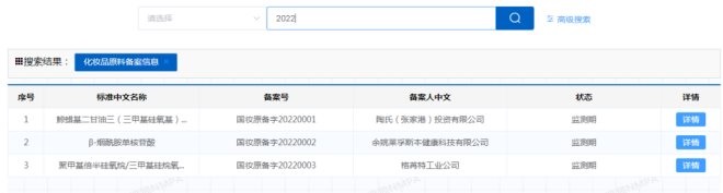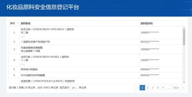 ▍截自化妝品原料安全信息登記平臺