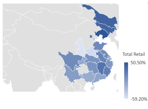 主要地區(qū)零售客流指數(shù)表現(xiàn)