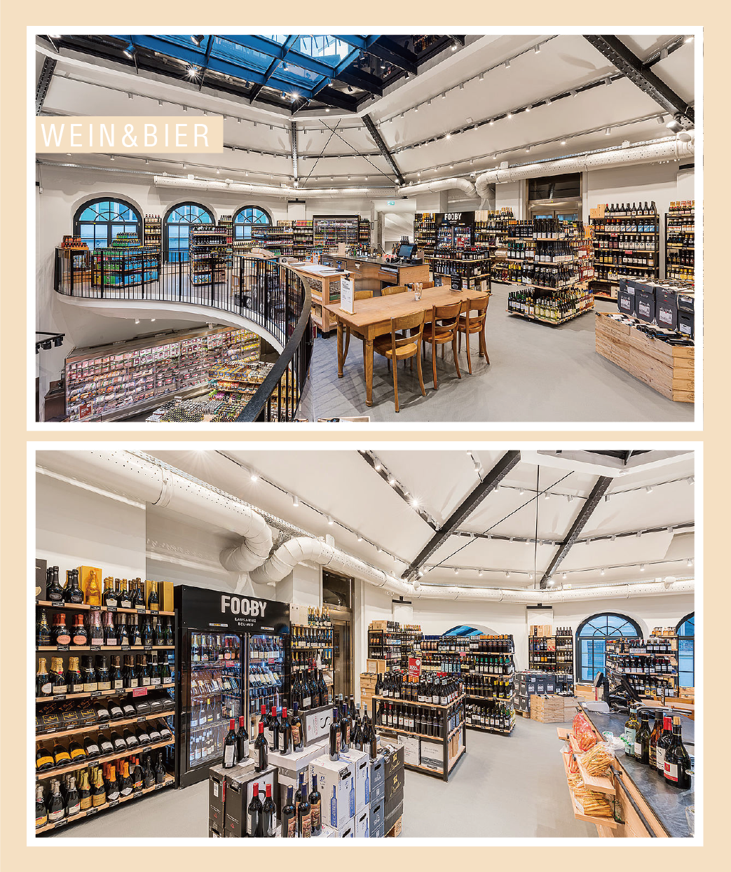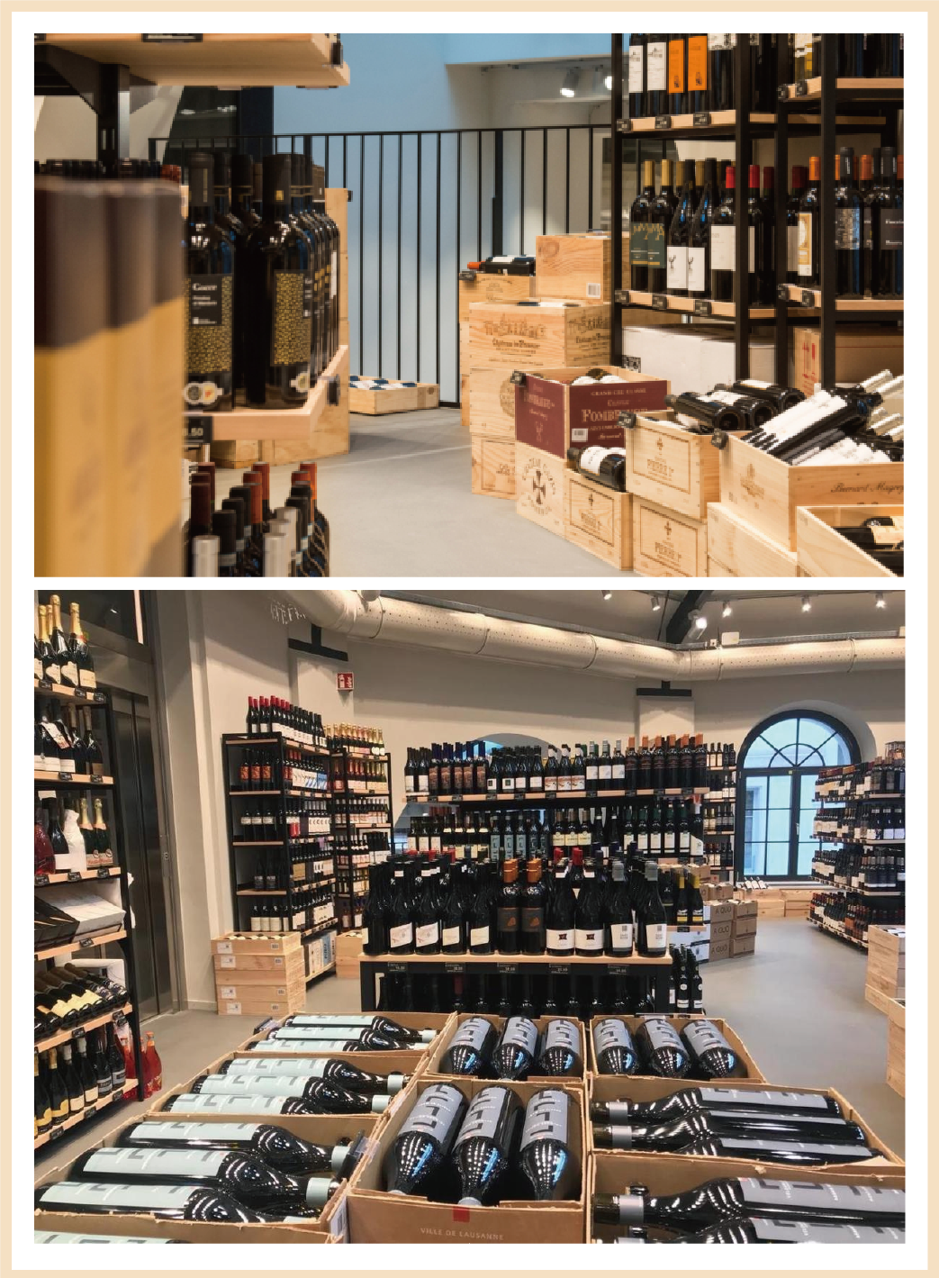 2層全部為酒飲賣場,啤酒由當(dāng)?shù)蒯劸茝SLa Nébuleuse 和 WhiteFrontier供應(yīng),葡萄酒來自沃州和洛桑市的莊園。除此以外,還有從法國進(jìn)口的葡萄酒。顧客可在1層購買肉制品和奶酪的冷盤,在2層試飲,侍酒師為顧客推薦合適口味的葡萄酒或啤酒。