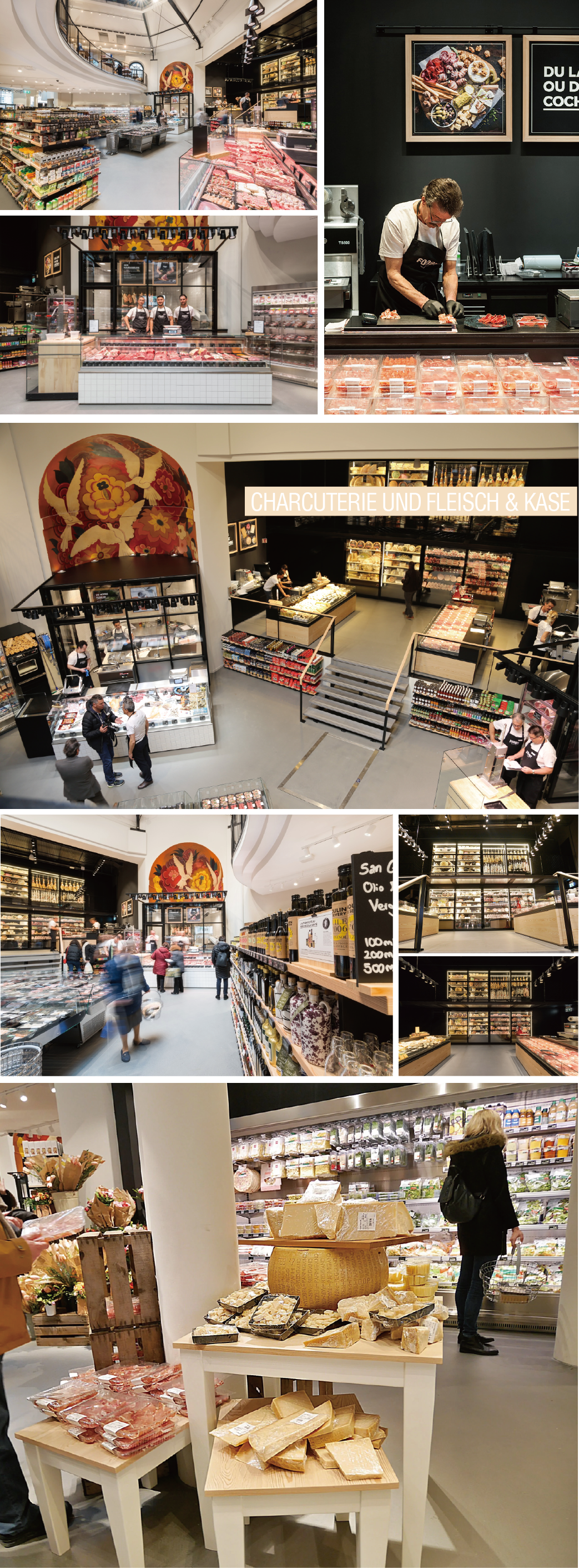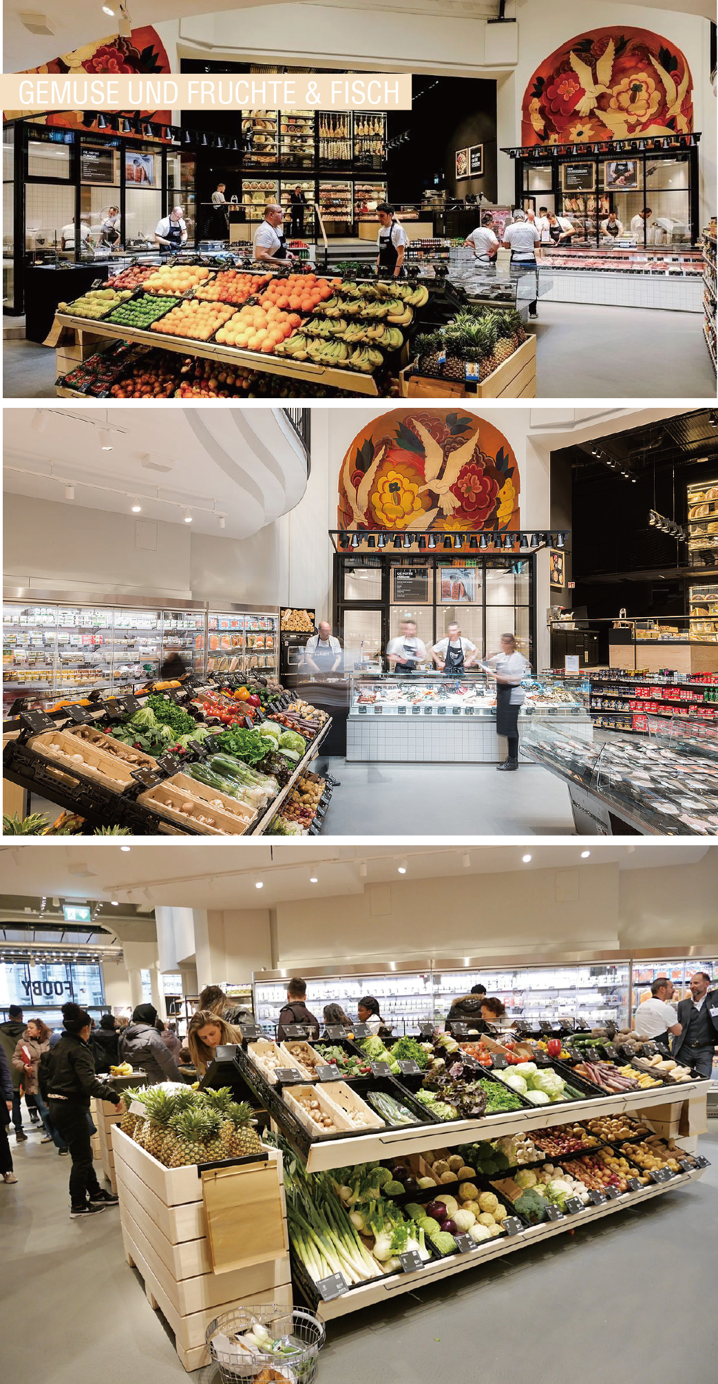 該建筑作為Fooby概念店選址的原因在于劇院與賣場在表演展示與現(xiàn)場體驗(yàn)上的相似性。Fooby在改造時(shí)保留了劇院原有的結(jié)構(gòu)和氛圍,并對玻璃屋頂、陽臺、壁龕和壁畫等進(jìn)行了大規(guī)模的修復(fù)和翻新。在此基礎(chǔ)上,進(jìn)行商業(yè)化的賣場設(shè)計(jì)。整體設(shè)計(jì)規(guī)劃由瑞士的Brem + Zehnder AG公司擔(dān)任。