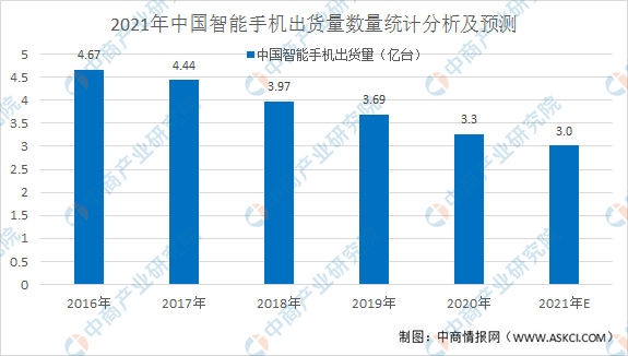 而反觀(guān)手機(jī)行業(yè),正處于規(guī)模下滑的態(tài)勢(shì)。IDC數(shù)據(jù)顯示,2016至2021年間,中國(guó)智能手機(jī)出貨量呈現(xiàn)逐年下滑的態(tài)勢(shì),由4.67億臺(tái)下滑至3.0億臺(tái)。