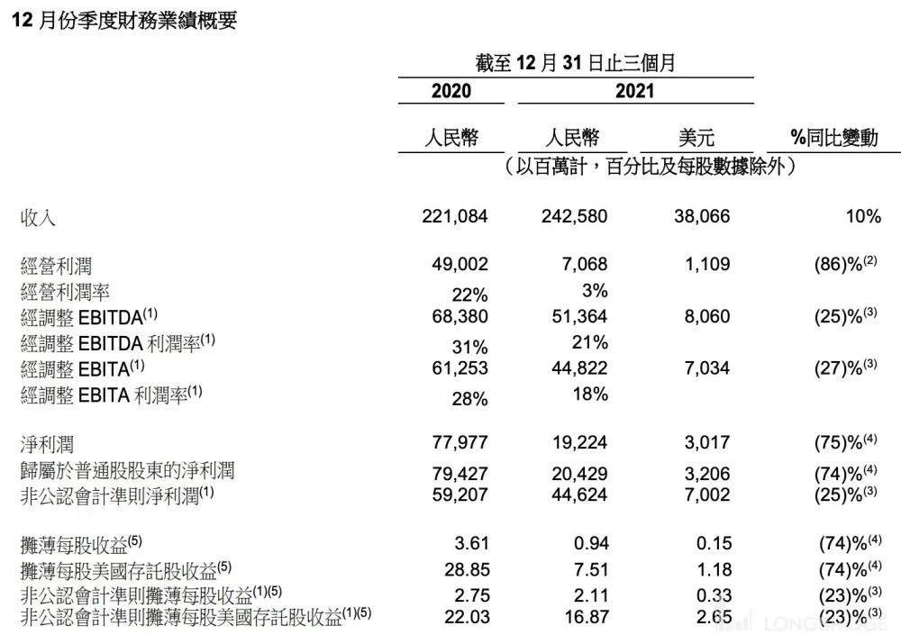 北京時間2月24日晚8點30分,阿里公布了2022財年第三季度,即截止2021年12月31日的最新一季財報。阿里營收增速回落至10%,續(xù)刷歷史新低;經(jīng)營利潤和凈利潤分別下降34%和75%。