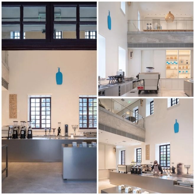 此外,藍(lán)瓶咖啡的門店選址也頗具特色。以上海裕通店為例,這家門店復(fù)古氣息濃厚,室內(nèi)設(shè)計以極簡為主,產(chǎn)品包裝設(shè)計上標(biāo)志性圖案藍(lán)色瓶子也十分吸睛。至于供應(yīng)問題,上海彭浦烘焙廠位于普洛斯靜安國際科創(chuàng)園,距離咖啡店面也是相對較近。