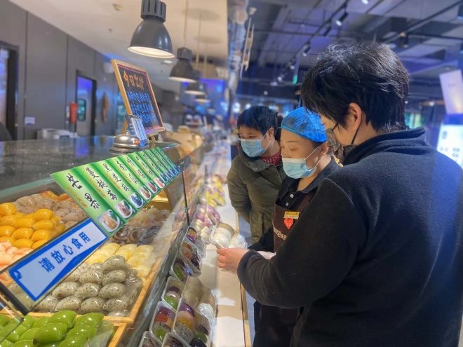 有位老顧客,每十余天會來選購四十多個紅豆餅,在溫情互動中,陳克美得知紅豆餅對顧客而言口感微甜且每次免不了等候。她便主動留下自己的電話,調(diào)低糖分含量提前完成定制,老顧客到店即取;有位膠東阿姨,年前來購買膠東大饃饃,可數(shù)量不夠,陳克美主動聯(lián)系廠家卻得知已停止制作。望向那雙失望遺憾的眼神,她帶領(lǐng)團隊擼起袖子開始制作,反復(fù)研制后送貨上門,這份意料之外的新春驚喜贏得了顧客的高度認(rèn)可。