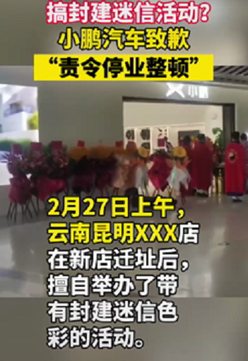 小鵬汽車(chē)門(mén)店大搞迷信活動(dòng) 官方致歉:停業(yè)整頓