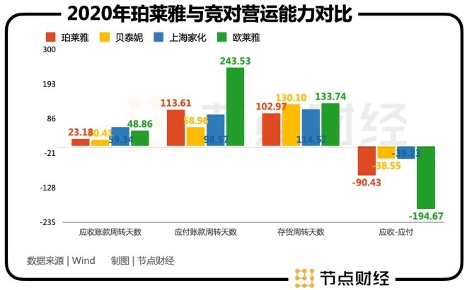 三看市場(chǎng)議價(jià)能力。從對(duì)上下游的資金占用情況來(lái)看,珀萊雅在國(guó)內(nèi)龍頭中有更強(qiáng)的議價(jià)能力,現(xiàn)階段品牌地位似乎更勝一籌;但同國(guó)際品牌來(lái)比,遠(yuǎn)遜色于歐萊雅。再者其存貨周轉(zhuǎn)較快,可見(jiàn)不管是用了什么營(yíng)銷(xiāo)手段,珀萊雅的貨比其他龍頭好賣(mài)。