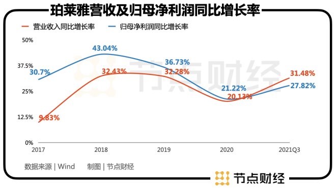 我們來(lái)看與估值水平相對(duì)應(yīng)的其成長(zhǎng)性,珀萊雅總收入同比增長(zhǎng)率2021E與凈利潤(rùn)同比增長(zhǎng)率2021E分別為25.41%、24.31%;中位值分別為20.56%、23.28%;丸美股份分別為6.19%、-27.90%;上海家化分別為11.86%、40.42%;貝泰妮分別為48.37%、52.75%。