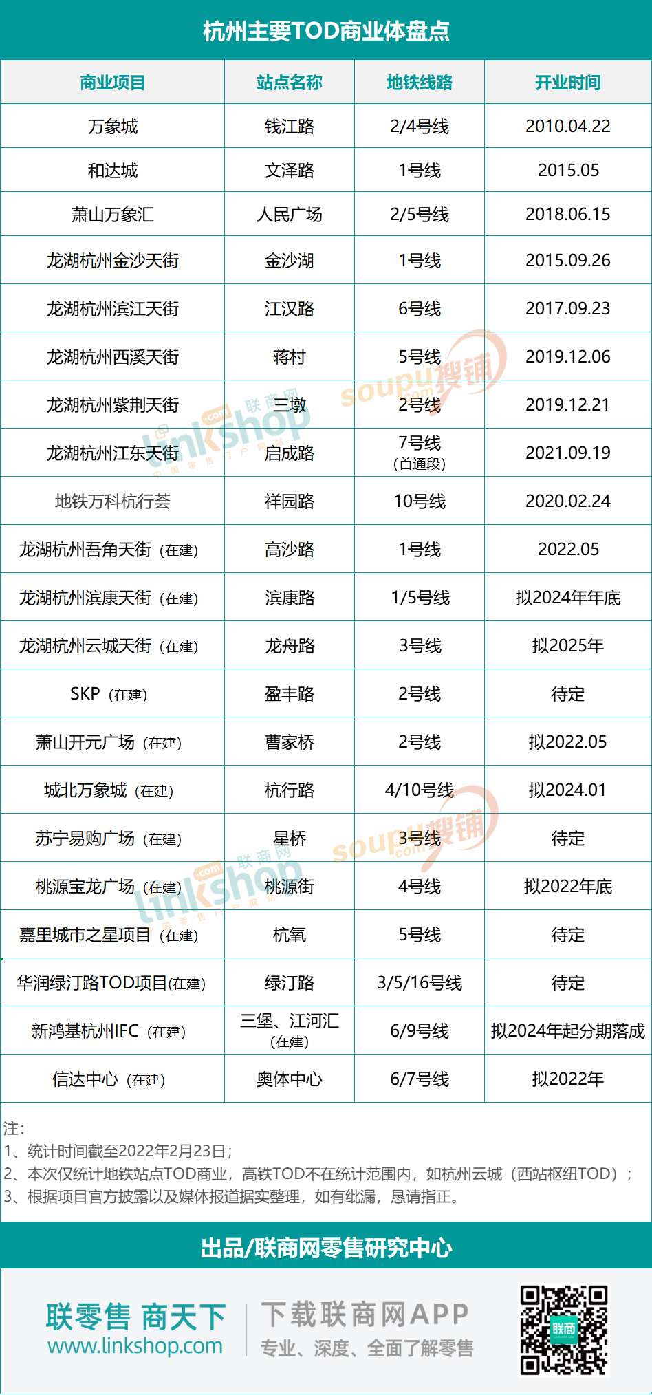 附杭州11條在營地鐵線路沿線商業(yè)體盤點: